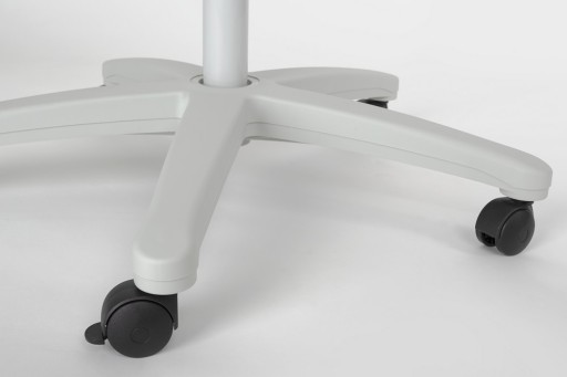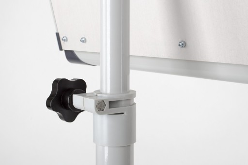 Tablica suchościeralna lakierowane o właściwościach magnetycznych. Służy do zawieszania wymiennych bloków o różnych formatach. Doskonale sprawdza się jako podstawowe wyposażenie sal szkoleniowych, konferencyjnych oraz gabinetów. Kolor popielaty z eleganckimi grafitowymi elementami. Tablica posiada stały kąt nachylenia wynoszący 15°. Mocne sprężynowe uchwyty do zawieszania bloków. Wygodna podstawa na kółkach o regulowanej wysokości od 175 do 195 cm. Wyposażony w wygodną półkę na markery. Wymiary: 700 x 1000 mm