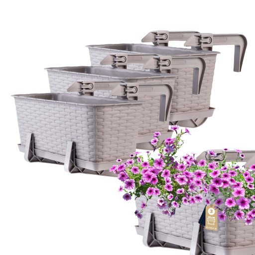 ✅W pakiecie otrzymasz od nas podstawki. Pozwolą na gromadzenie wody i prawidłowe nawodnienie roślin. Nie zmoczysz balustrady ani parapetu na tarasie!