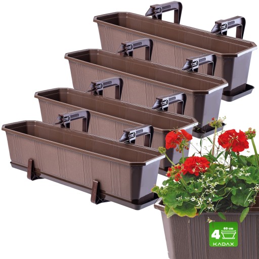 KADAX 4x SKRZYNKA BALKONOWA 60cm UCHWYTY BRĄZOWA