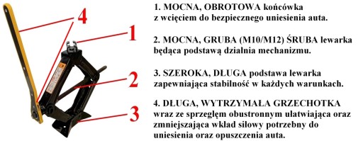 - mocna, długa grzechotka do wygodnego unoszenia i opuszczania lewarka