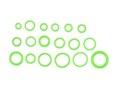 Zestaw oringów (uszczelek) do klimatyzacji. Oringi marki GEKO charakteryzują się wysoką odpornością na: ozon, paliwo diesel, oleje mineralne i smary, oleje pochodzenia roślinnego i zwierzęcego, lekkie oleje opałowe, emulsje olejowo-wodne typu HSA, HSB, węglowodany alifatyczne jak: benzyna, propan-butan, rozcieńczone kwasy, zasady i sole (nawet w podwyższonej temp.), kwaśne gazy, mieszaniny glikoli z wodą do 150°C.