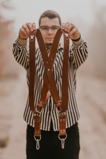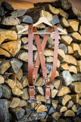 Szelki przeznaczone są dla jednego lub dwóch body. Skóra w kolorze koniak, brązowym, czarnym lub granatowym jest pochodzenia polskiego, posiada piękną strukturę prawdziwej skóry licowej oraz zabezpieczona jest lakierowaną krawędzią pasa chroniąc go przed strzępieniem. Mocowanie aparatu odbywa się przez śrubę uniwersalną 1/4" oraz stalowy karabinek M6, natomiast rolę elementu przesuwnego po skórze pełni stalowy D-ring. Dodatkowym zabezpieczeniem aparatu przed wypięciem jest niezwykle wytrzymała 10mm taśma spięta karabinkiem M4. Długości pasów regulujemy za pomocą szeregu otworków natomiast rozłożenie splotu na plecach za pomocą nabijanego maszynowo nita.