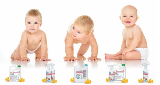 Składający się w 100% z naturalnych składników, płyn do mycia zabawek dziecięcych, akcesoriów, mebli, tekstyliów oraz innych powierzchni, z którymi dzieci mają styczność. Posiada europejski znak jakości V-Label dla produktów wegańskich.