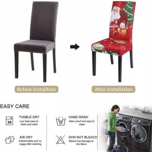 ✿【Esay to Care】 Zdejmowany, zmywalny pokrowiec na krzesło do jadalni na Boże Narodzenie o doskonałej jakości jest bardzo łatwy w montażu i demontażu, a także wygodniejszy w czyszczeniu. Wystarczy włożyć brudne pokrowce na krzesła do pralki bez wybielania i prasowania. Po wyschnięciu narzuta na krzesło do jadalni ze stretchem będzie czysta i nie zdeformowana.