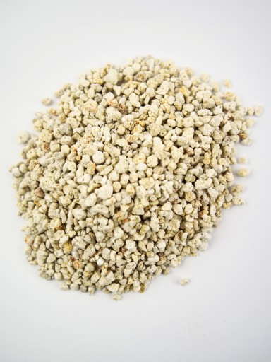 Perlit, naturalny produkt pochodzenia mineralnego. Tworzy świetne warunki do rozwoju systemu korzeniowego roślin, w znacznym stopniu spulchnia podłoże poprawiając jego lekkość i przepuszczalność powietrza.