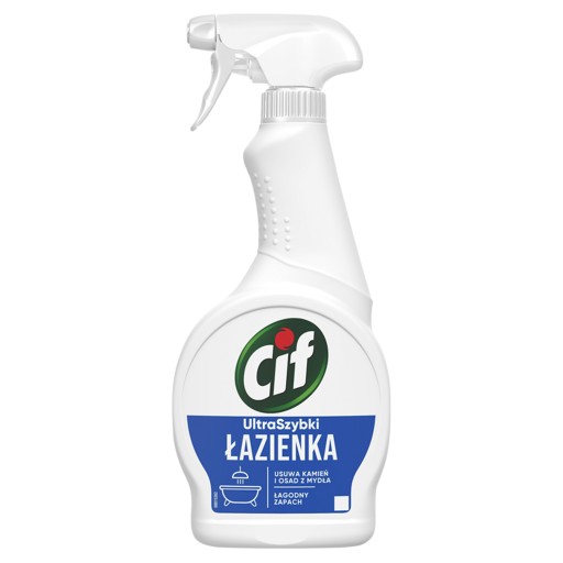 Spray Cif Ultraszybki Łazienka to idealny produkt do czyszczenia łazienki. Jego skuteczna formuła działa już w 10 sekund, by błyskawicznie usuwać codzienne zabrudzenia z pasty do zębów i tuszu do rzęs, a także osad z kamienia i mydła. Doskonale radzi sobie również ze smugami i śladami twardej wody, dzięki czemu Twoja łazienka będzie idealnie czysta. Spray Cif Ultraszybki Łazienka może być stosowany do czyszczenia powierzchni emaliowanych, ceramicznych, chromowanych oraz wykonanych ze stali nierdzewnej.