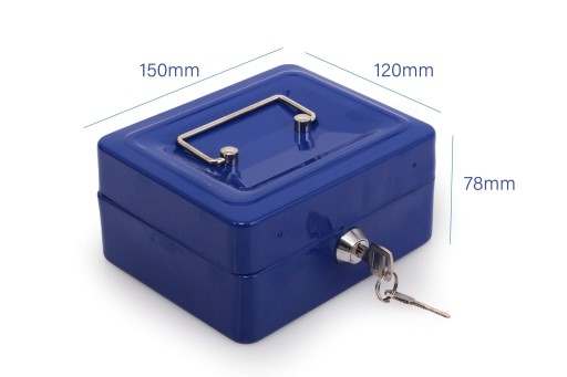 Metalowa kasetka idealna do przechowywania niewielkich kwot pieniędzy, dokumentów lub innych drobnych przedmiotów.