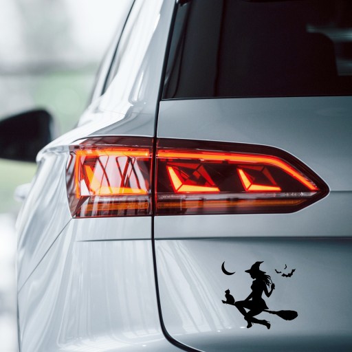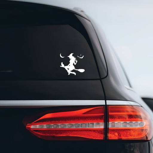 Автомобильная наклейка ВЕДЬМА НА МЕТЛЕ С КОШКОЙ - идеальный аксессуар, долговечный.