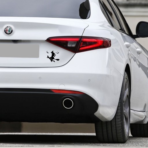 Naklejka na samochód CZAROWNICA NA MIOTLE Z KOTEM - idealny dodatek, trwała