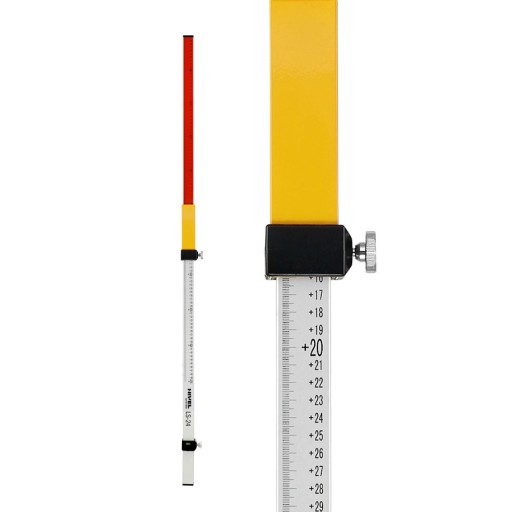 - Do różnych zadań – poręczna, wytrzymała łata do niwelacji laserowej z precyzyjną, milimetrową podziałką i łatwym odczytem odchylenia od poziomu.