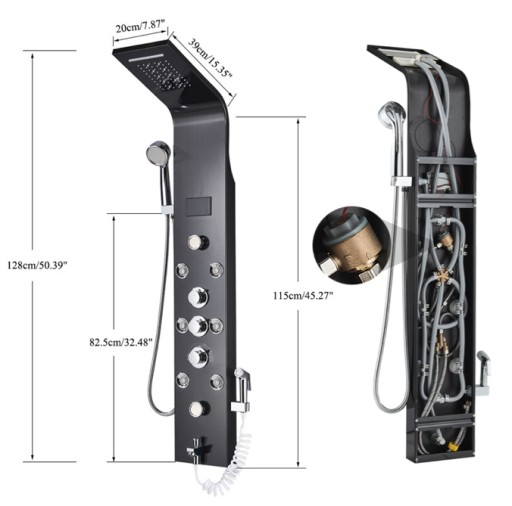 Panel z deszczownicą i hydromasażem zawiera wszystkie niezbędne elementy do montażu w Waszej łazience, pokoju kąpielowym czy prywatnym SPA.
