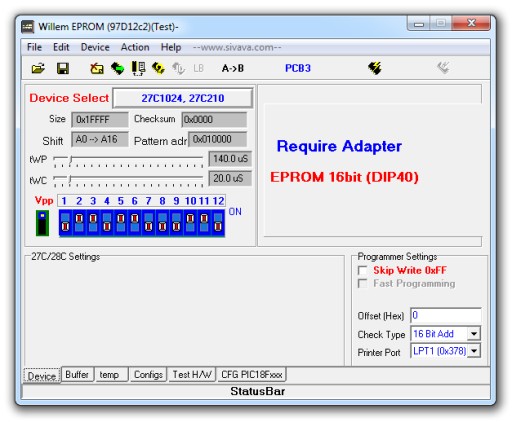 - - przy użyciu programatora Universal Flash Programmer (v. 6.0x) i programu Willem EPROM Prog