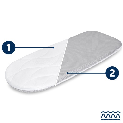 ➔ strona w kolorze szarym (siatka wentylująca 3D + profil fali wycięty w piance) zapewni swobodny przepływ powietrza pomiędzy pleckami dziecka. Strona w kolorze beżowym (dzianina bambusowa + płaska strona piankowa) zapewnia większą twardość oraz jest milsza w dotyku