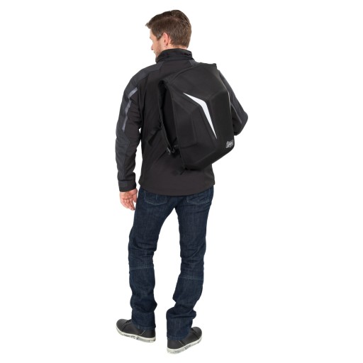 Aerodynamiczny plecak motocyklowy o pojemności 18 litrów. Funkcjonalność oraz konstrukcja czynią go idealnym podczas każdej motocyklowej przejażdżki. Specjalnie uformowana, sztywna powłoka z wytrzymałego materiału tekstylnego chroni zawartość plecaka. Zarazem jest on lekki i wygodny.
