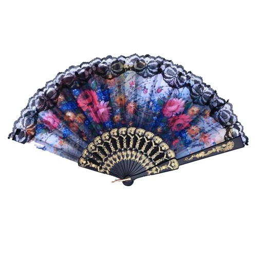 Czarny złoty wachlarz składany w kwiaty mix wzorów