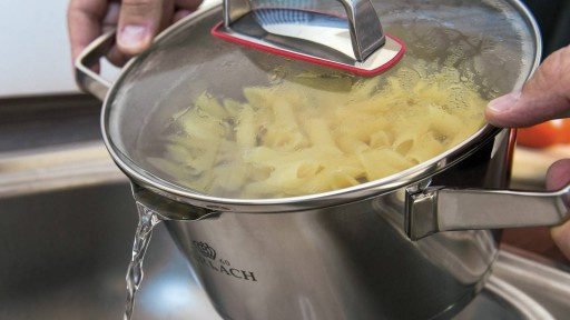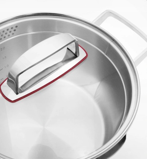 Pokrywy z hartowanego szkła ze stalową obręczą oraz praktycznymi sitkami do odcedzania, pozwalają na wygodne gotowanie oraz kontrolowanie procesu przygotowywania potraw. Uchwyty pokrywek z silikonowymi podkładkami doskonale chronią przed nagrzewaniem, co zapewnia bezpieczeństwo i wygodę podczas użytkowania.