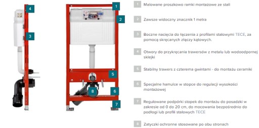 do mocowania na kształtownikach stalowych TECEprofil lub do montażu w ścianach z profili metalowych lub drewnianych oraz jako ściana przednia lub moduł narożny.
