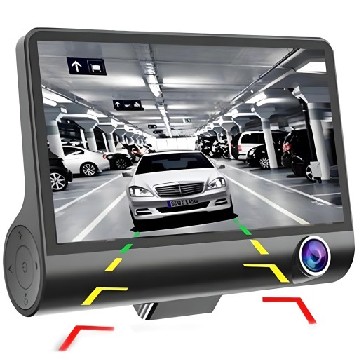 Samochodowy rejestrator jazdy, urządzenie niezbędne dla każdego kierowcy. Zestaw 3 kamer (przód, tył, kokpit) plus duży wyświetlacz LCD. Nagrywarka samochodowa do rejestracji zdarzeń i kolizji.