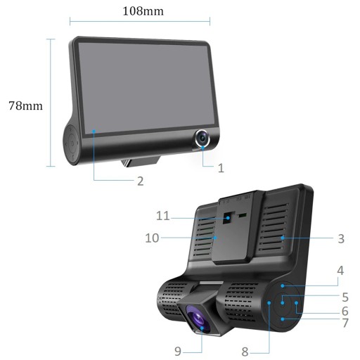 ☑️Urządzenie zostało wyposażone w wysokiej klasy dwa obiektyw o dużym kącie widzenia 170 stopni oraz 120 stopni co pozwala na rejestrację obrazu na wprost oraz po obu stronach jezdni