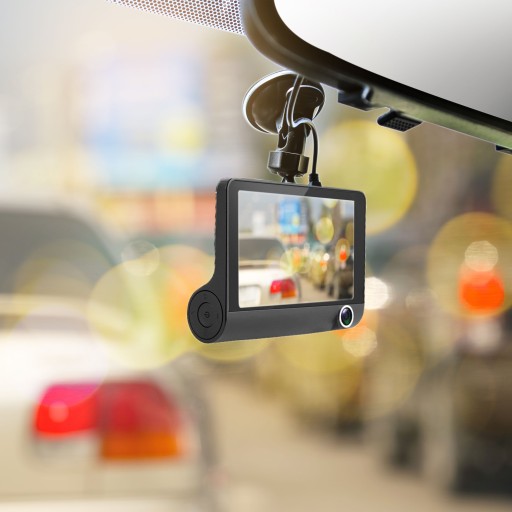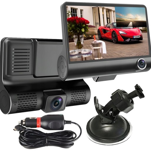 Samochodowy rejestrator jazdy, urządzenie niezbędne dla każdego kierowcy. Zestaw 3 kamer (przód, tył, kokpit) plus duży wyświetlacz LCD. Nagrywarka samochodowa do rejestracji zdarzeń i kolizji.
