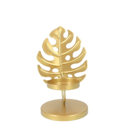 ŚWIECZNIK METALOWY ZŁOTY Z OZDOBNYM LIŚCIEM