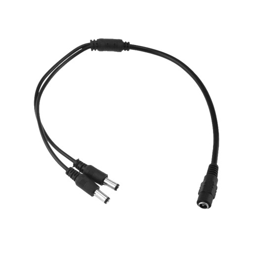 Wysokiej klasy rozdzielacz zasilania DC z gniazdem o średnicy 5,5mm i 2 końcówkami o średnicy 2,1mm.