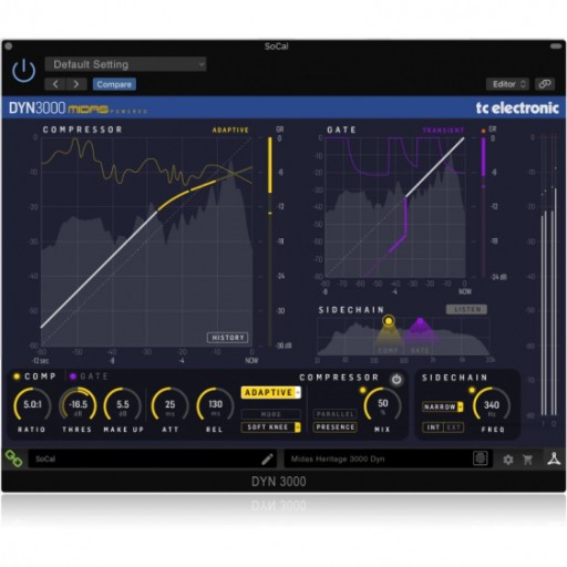 TC Electronic DYN3000 DT kompresor/bramka w formie wtyczki VST oparta na algorytmach znanych z konsolet Midas Heritage 3000. Główne cechy: