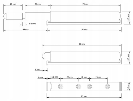 Odbojnik push to open z gumową końcówką z regulacją