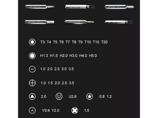 - Śrubokręt sześciokątny: H1.3, H1.5, H2.0, H3.0, H4.0, H5.0