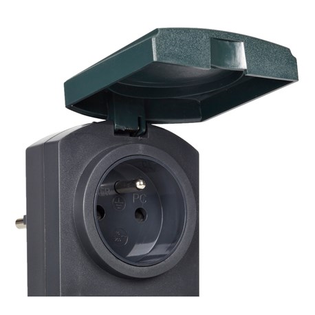 DO UŻYTKU NA ZEWNĄTRZ POMIESZCZEŃ Wysoki stopień ochrony obudowy (IP44) i klapka ochronna zapewniają, że zewnętrzny wyłącznik czasowy nadaje się do użytku na zewnątrz pomieszczeń.