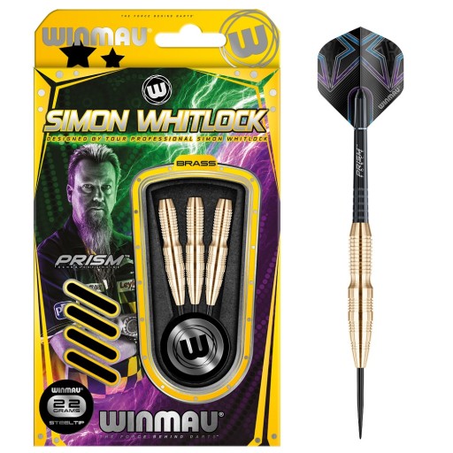 Mosiężne lotki Winmau sygnowane nazwiskiem Simona Whitlocka.