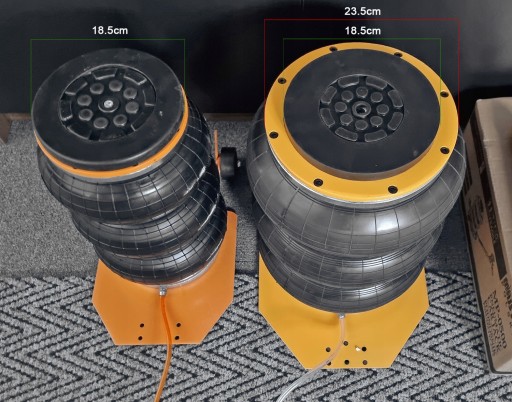 nasz podnośnik utrzymuje pion na stalowym siłowniku który wychyla się nieco lecz utrzymuje zwartą konstrukcję oraz gumowy miech w osi