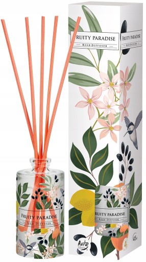 Dyfuzor zapachowy z patyczkami, owocowy raj o pojemności 45ml i trwałości zapachu do 4 tygodni BISPOL.
