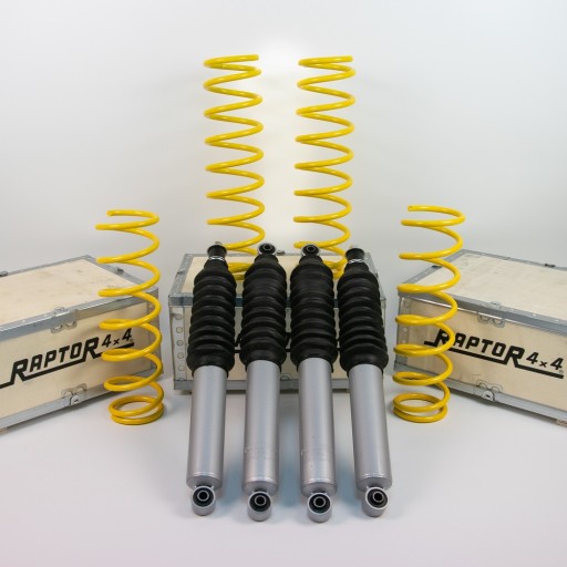 Zestaw lift zawieszenia +5/6cm marki Raptor 4x4. Zapewnia dobry kompromis pomiędzy właściwościami terenowymi i stabilnym zachowaniem auta na drodze