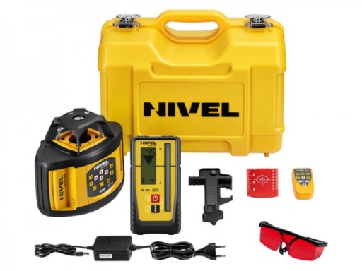 Obrotowy niwelator laserowy Nivel System NL520D (czerwona wiązka) to szybki i łatwy w użyciu instrument pomiarowy do realizacji prac poziomych, w pochyle i w pionie. Niwelator można wykorzystać zarówno do prac wewnątrz pomieszczeń (z widoczną wiązką lasera), jak i na otwartych przestrzeniach (z wykorzystaniem detektora). Po włączeniu laser automatycznie się poziomuje. Sprzęt jest przyjazny użytkownikowi dzięki intuicyjnemu interfejsowi i możliwości zdalnej obsługi za pomocą pilota.