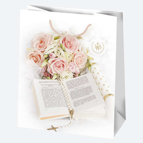 Torba ozdobna Komunia Róże 19x23x10,5cm