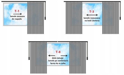 Istnieje możliwość łączenia w poziomie dwóch żaluzji pionowych - mogą one wtedy zasłonić dwukrotnie szerszą powierzchnię (maksymalnie 4,8m szerokości) Żaluzje mają dwa osobne sznurki do obsługi.