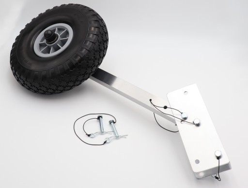 ✔️ Funkcją ułatwiająca wodowanie w płytkiej wodzie - sworzeń blokujący koła w pozycji dolnej nie przechodzi przez ramię koła lecz za ramieniem, co w znaczny sposób ułatwia jego wyciągnięcie i podniesienie kółek do góry.
