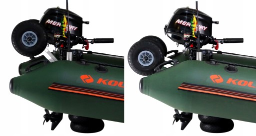 ✔️ Koła w pozycji dolnej (pomagają zwodować ponton i ochronić śrubę silnika przy wodowaniu i wyciąganiu pontonu/łódki z wody)