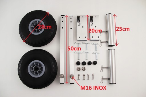 ZESTAW KÓŁ TRANSPORTOWYCH DO SLIPOWANIA/WODOWANIA PONTONU LUB ŁÓDKI + 2 UCHWYTY WĘDEK