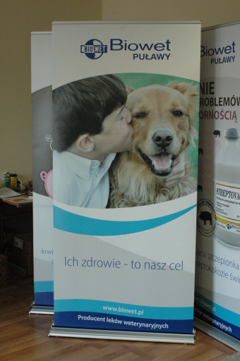 - Grafika drukowana na materiale dedykowanym do rollupów