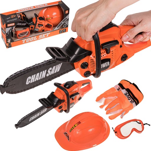 Wyjątkowo realistycznie wyglądająca zabawkowa piła motorowa to zabawka, którą pokocha każdy mały majsterkowicz. Zabawkowa piła motorowa wydaje dokładnie takie odgłosy silnika, jak jej „dorosła” wersja (rozruch, piłowanie), którą tata trzyma w garażu. Nawet łańcuch zabawkowej piły motorowej tak samo się obraca, więc można pomóc tacie „ciąć drzewo”! W zasadzie można pokusić się o stwierdzenie, że zabawkowa piła motorowa JEST LEPSZA od tej, którą posiada tata – bo DZIAŁA NA BATERIE! Z takim sprzętem żadna praca nie będzie za dużym wyzwaniem dla małego drwala!