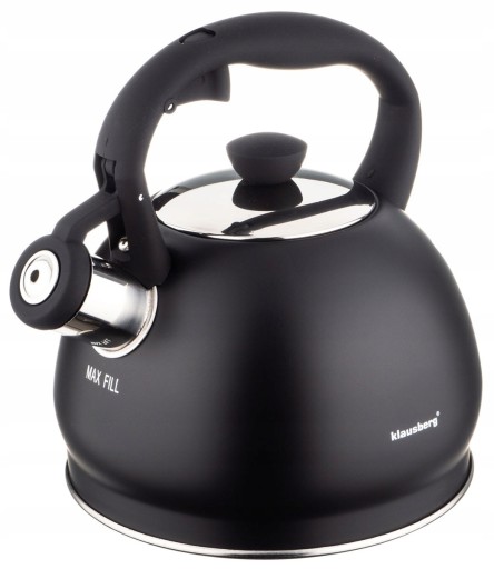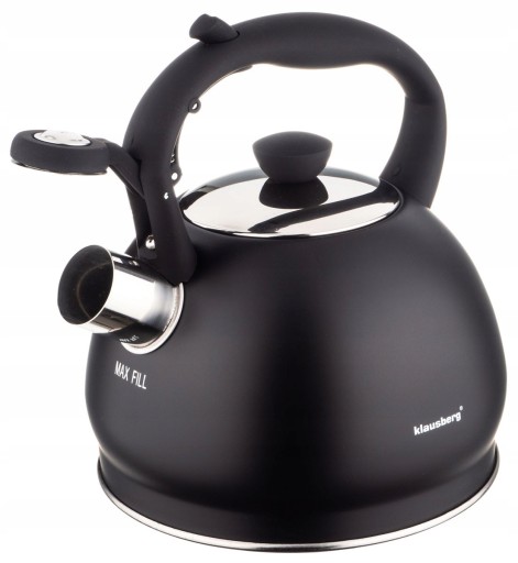 Posiada zintegrowany gwizdek sygnalizujący zagotowanie wody odchylany za pomocą guzika w rączce.