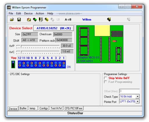 - przy użyciu programatora Universal Flash Programmer (v. 6.0x) i programu Willem EPROM Prog
