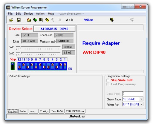 Programowanie odbywa się w sposób równoległy (co umożliwia m.in. programowanie i odczyt bitów FSTRT i SPIEN w mikrokontrolerach AVR- niedostępne dla programatorów szeregowych)