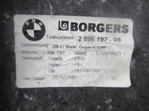 ОБИВКА БАГАЖНИКА, ЗАДНЯЯ СЛЕВА, E82 КУПЕ