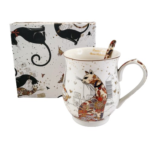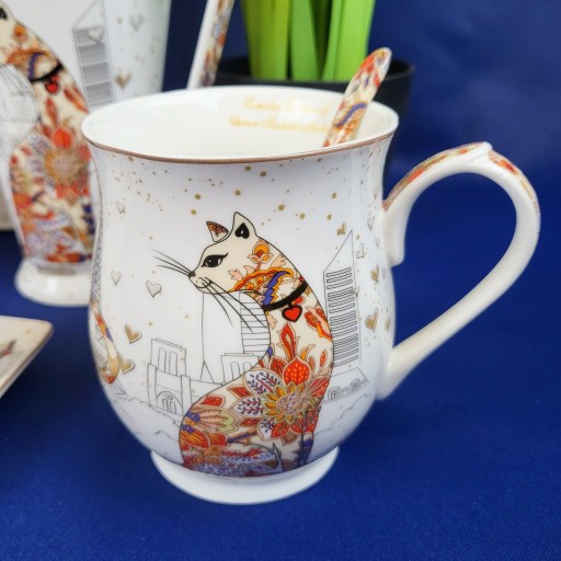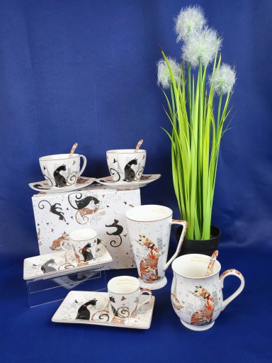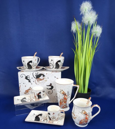 Elegancki kubek z motywem kotów w pudełku.