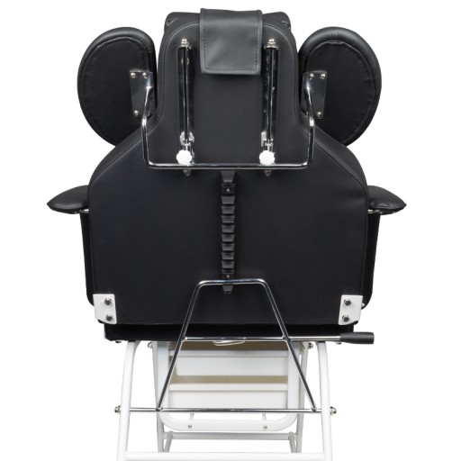 Fotel posiada ręczną regulację podnóżka, oparcia oraz podparcia rąk dla wykonywującego zabieg.