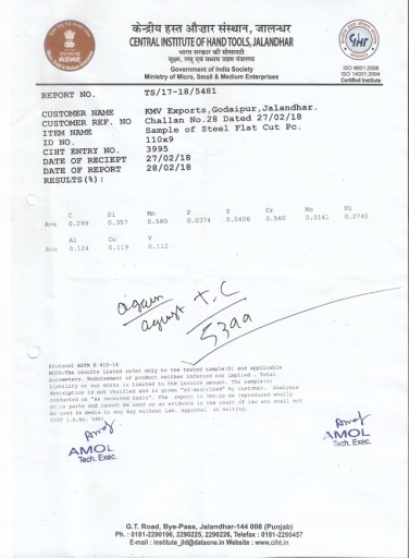 - Vanandium :- In The Range of 0.07%--0.10 %