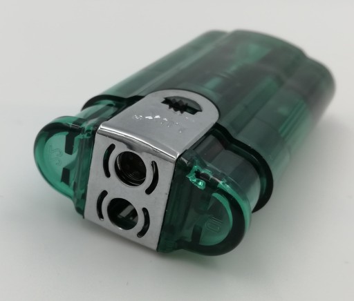 Oferta dotyczy zapalniczki z dwoma palnikami i z niezależnymi przyciskami. Jeden palnik jest żarowy i ma płomień typu Jet. Drugi palnik ma płomień zwykły. Zapalniczkę można wielokrotnie nabijać gazem. Zapalniczka posiada regulację wysokości płomienia. Każdy palnik ma własny regulator. Wymiary zapalniczki to 6,5x3x1,5 cm.